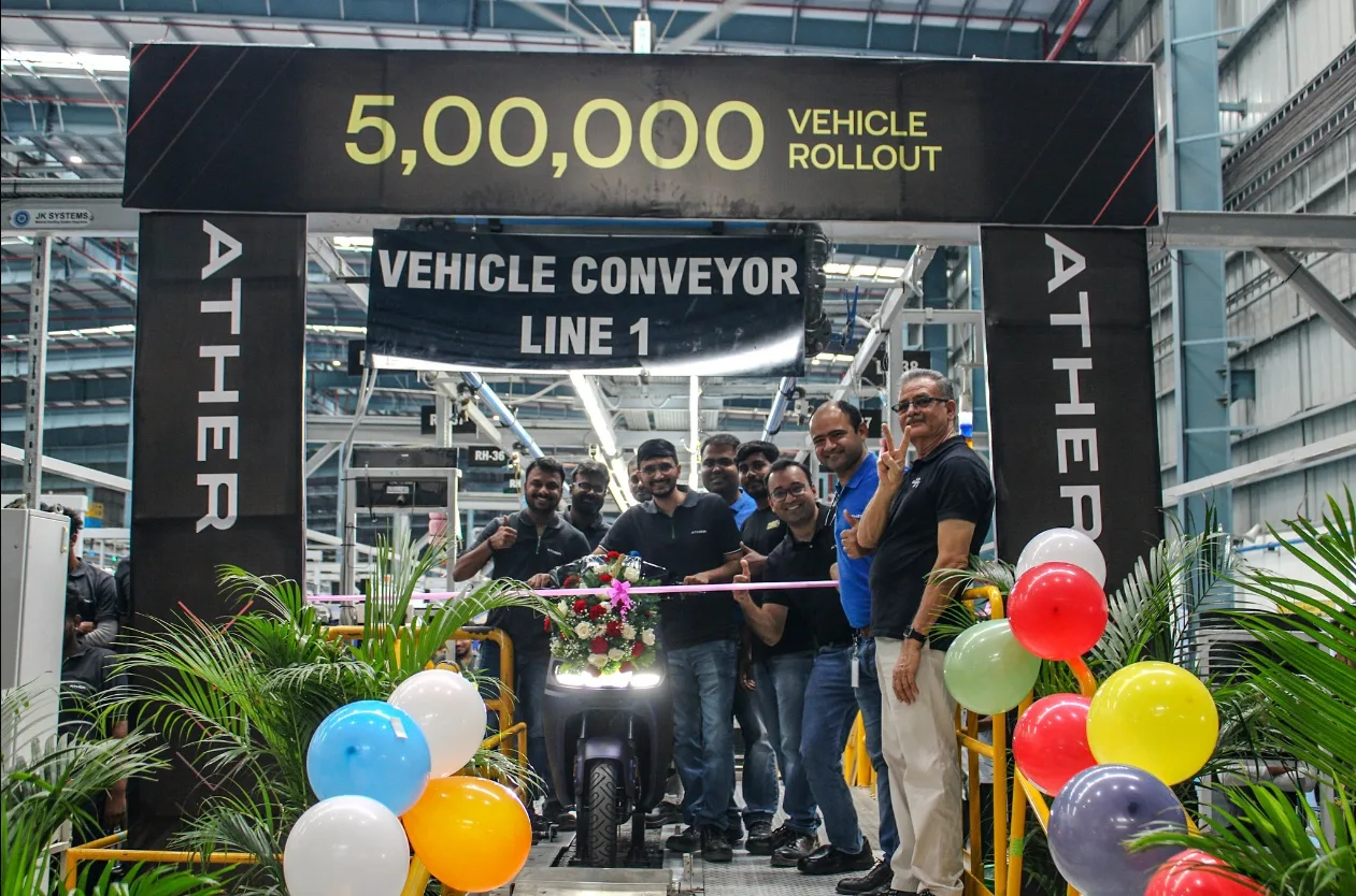 Bengaluru-based EV maker Ather Energy has achieved a massive milestone by rolling out its 5,00,000th electric scooter from its Hosur facility in Tamil Nadu.