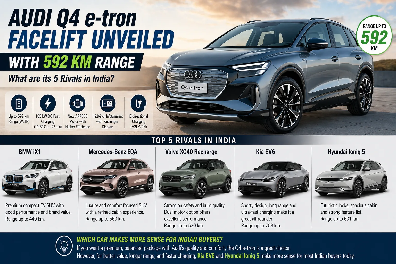 Audi Q4 e-tron Facelift Unveiled With 592 km Range: Top 5 Rivals in India
