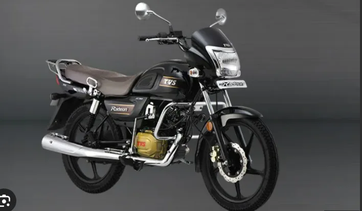 The TVS Radeon is a stylish commuter bike designed for daily urban and rural rides. It features a 109.7cc, single-cylinder, air-cooled engine delivering 8.08 bhp at 7,350 rpm and 8.7 Nm of torque at 4,500 rpm. Paired with a 4-speed manual transmission, it offers a top speed of approximately 90 km/h.