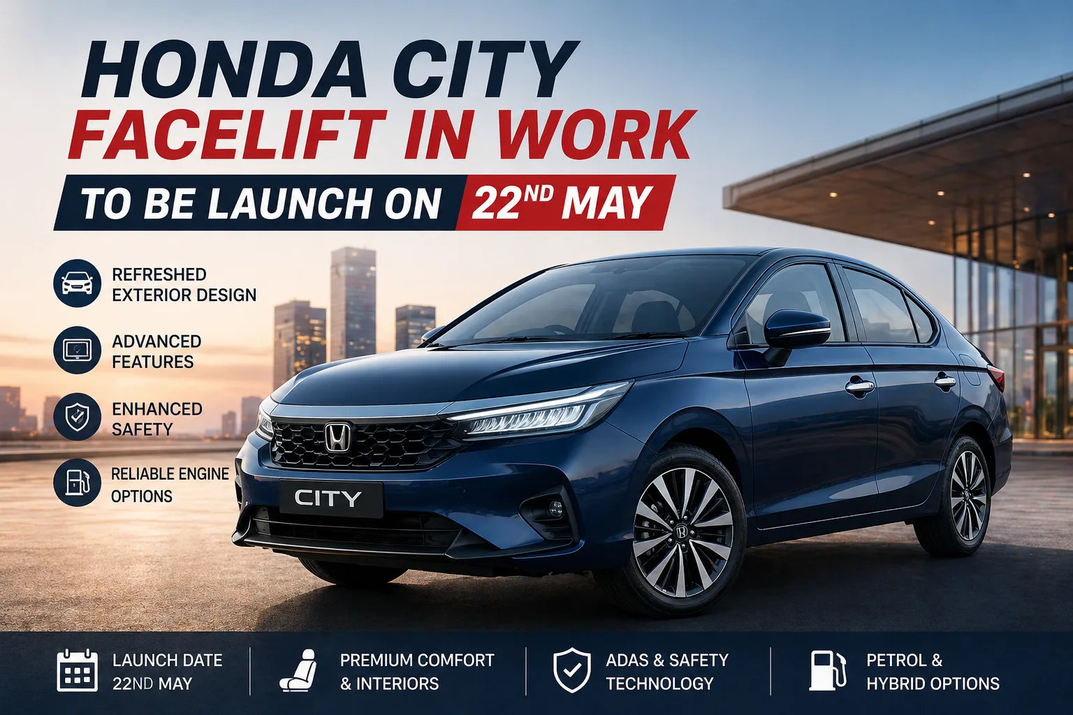 Honda Cars India is preparing to update one of its most popular sedans, the Honda City, with a facelift that is expected to debut on May 22.